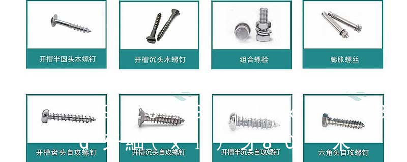 (鐵板牙自攻螺絲) B-2: Plastic Tapping Screw. (塑膠用,自攻螺絲) C: Wooden Screw : 木工螺絲 D: Drywall Screw :水泥墻螺絲 E: Self Drilling Screws鉆尾螺絲(不銹鋼鉆尾螺絲,復(fù)合材料鉆尾螺絲) F:膨脹螺絲,四片膨脹螺絲又